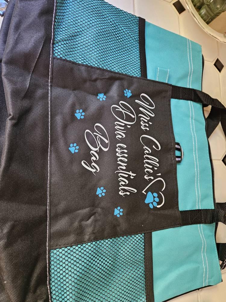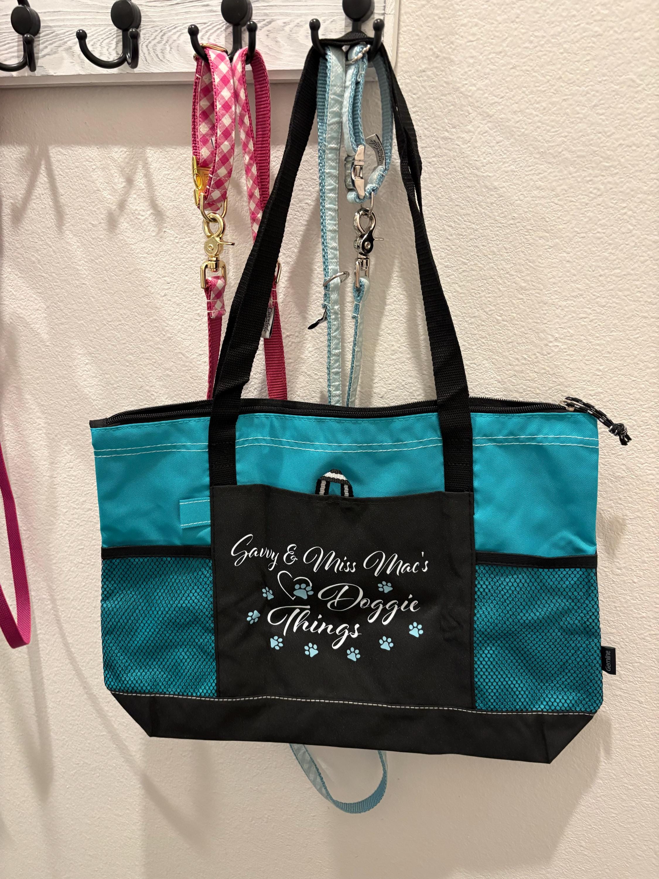 This Personalized Pet Doggie Things Tote Bag makes the Perfect gift for Dog owners, Dog Lovers, Pet lovers, Dog groomers! Add your Pet's name to these Tote bags to make it special and one of a kind! This tote bag is not only beautiful, it is also Large and functional with a Zipper closure to keep things from falling out! Did we mention how Large it is because it can fit A LOT of things! Take it to the Beach, the Park, Dog Daycare, Dog groomers!