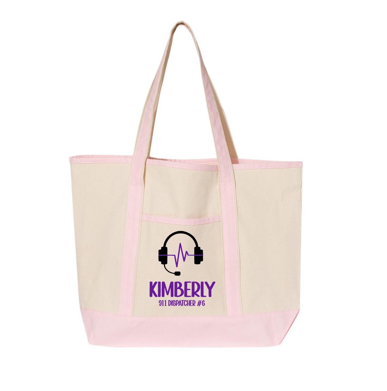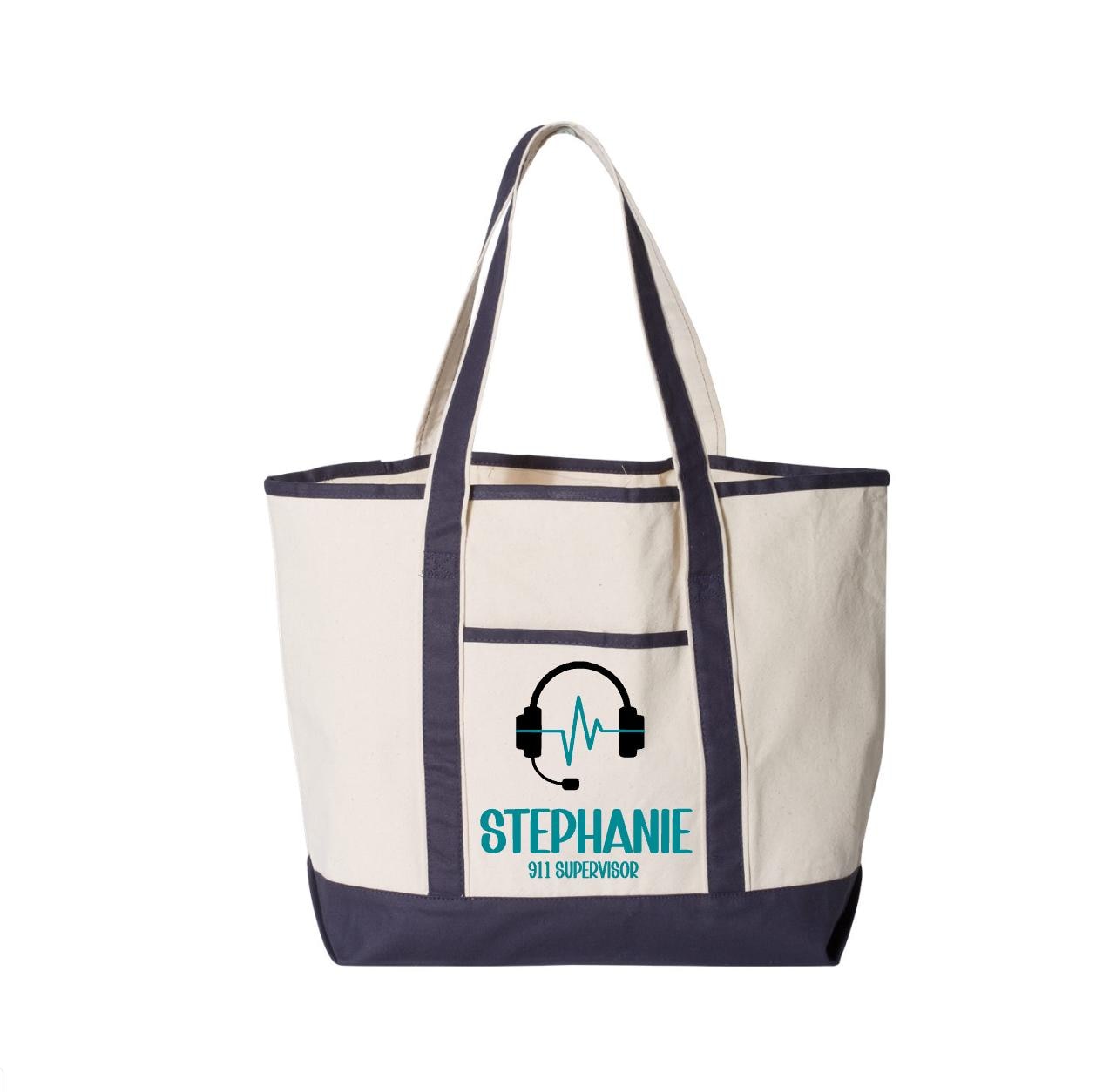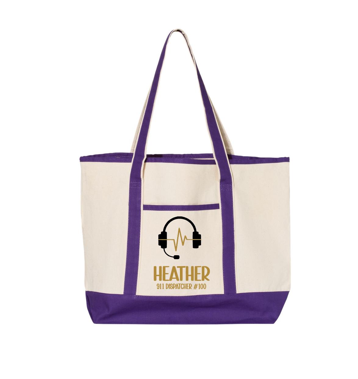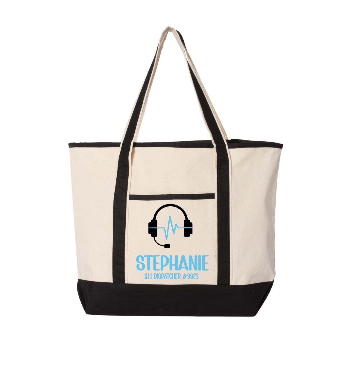 Personalized 911 Dispatcher Tote Bag — Custom Canvas Bag with Name, Title, and Badge Number