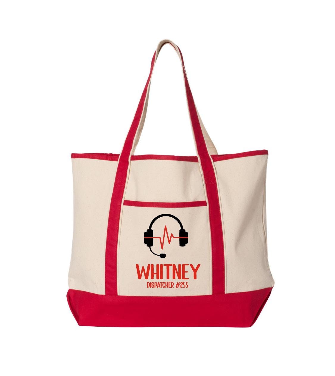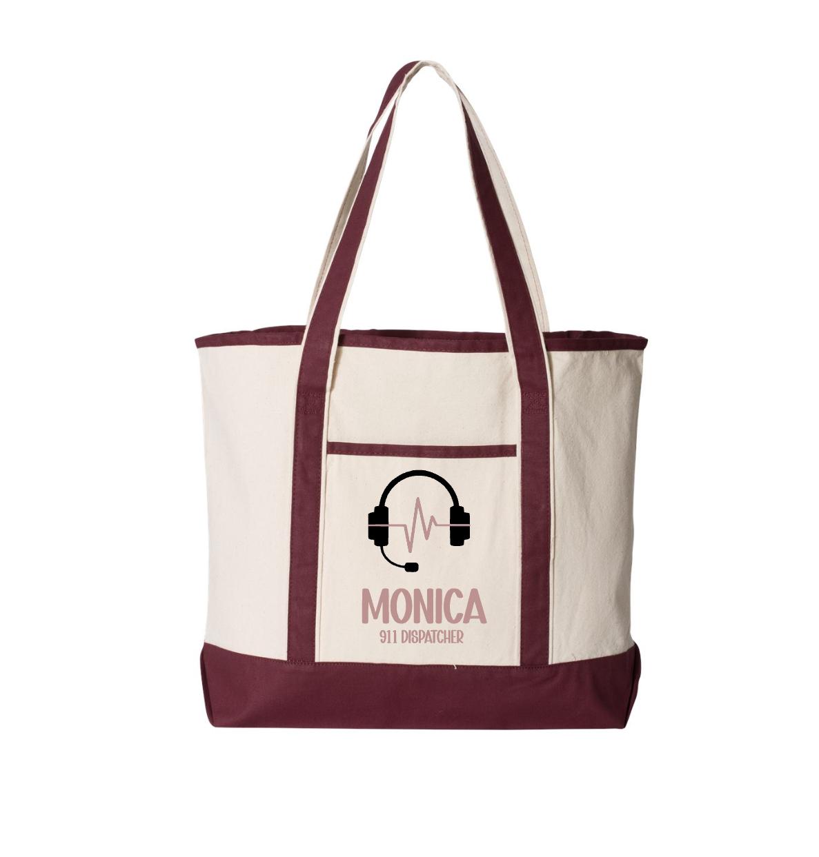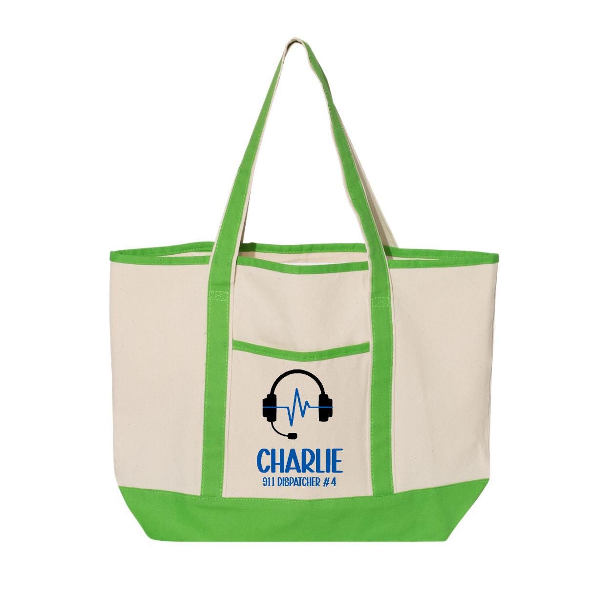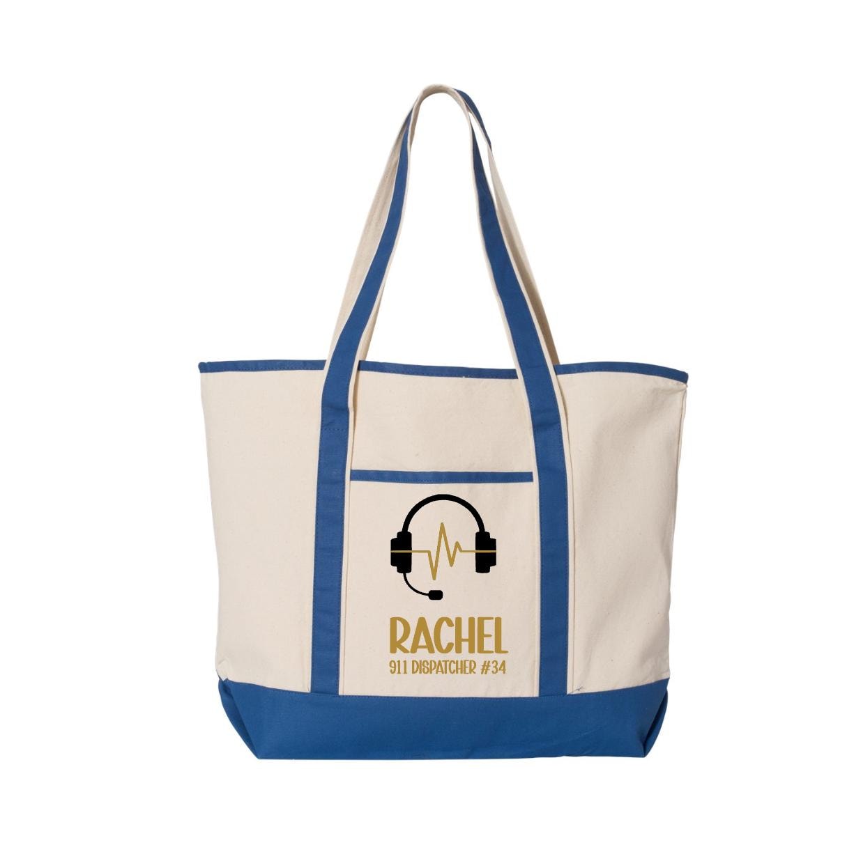 Personalized 911 Dispatcher Tote Bag — Custom Canvas Bag with Name, Title, and Badge Number