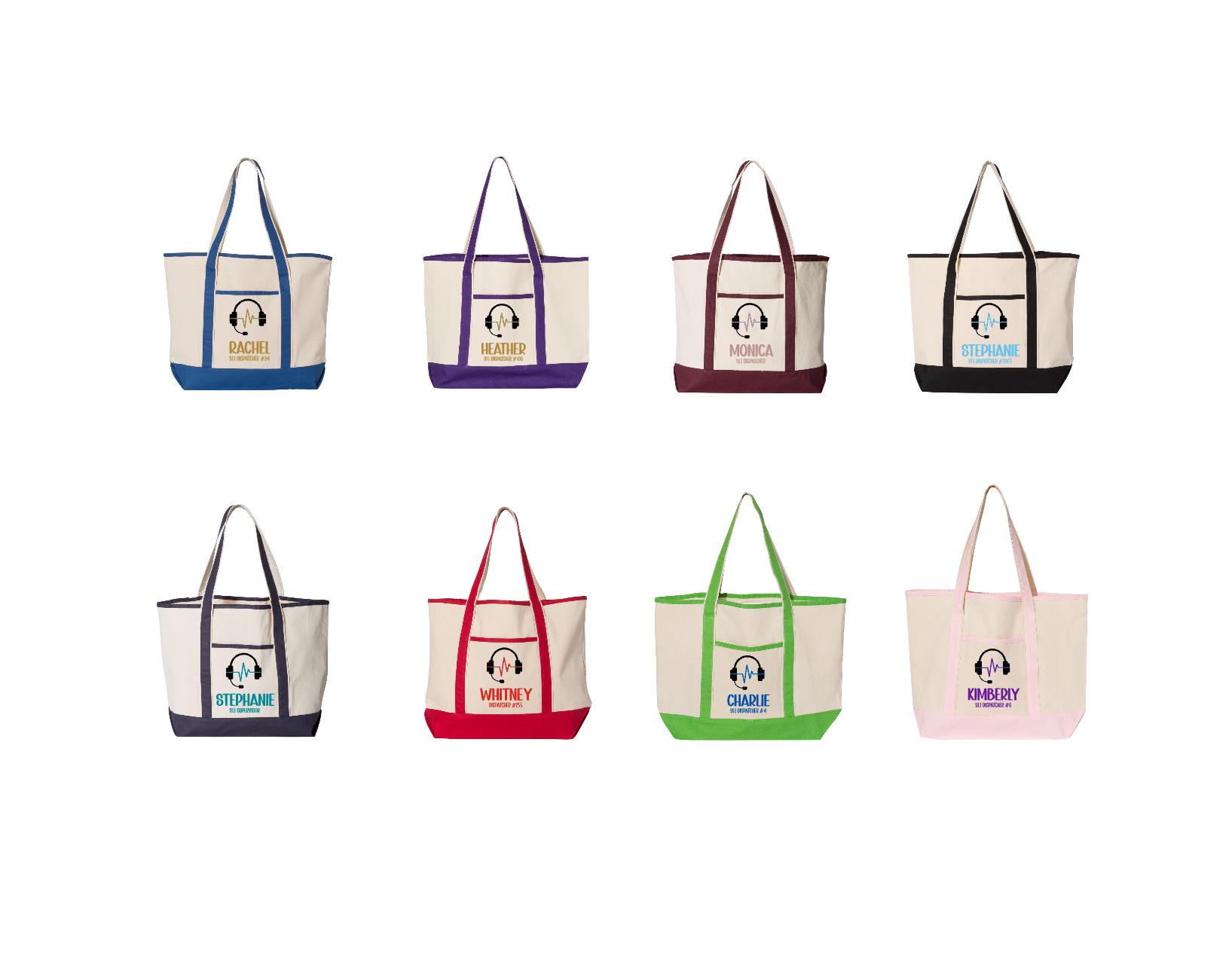 This item was purchased as a Telecommunicators Week gift. The bag arrived quickly, is well-sized, & I liked the result of the personalization.