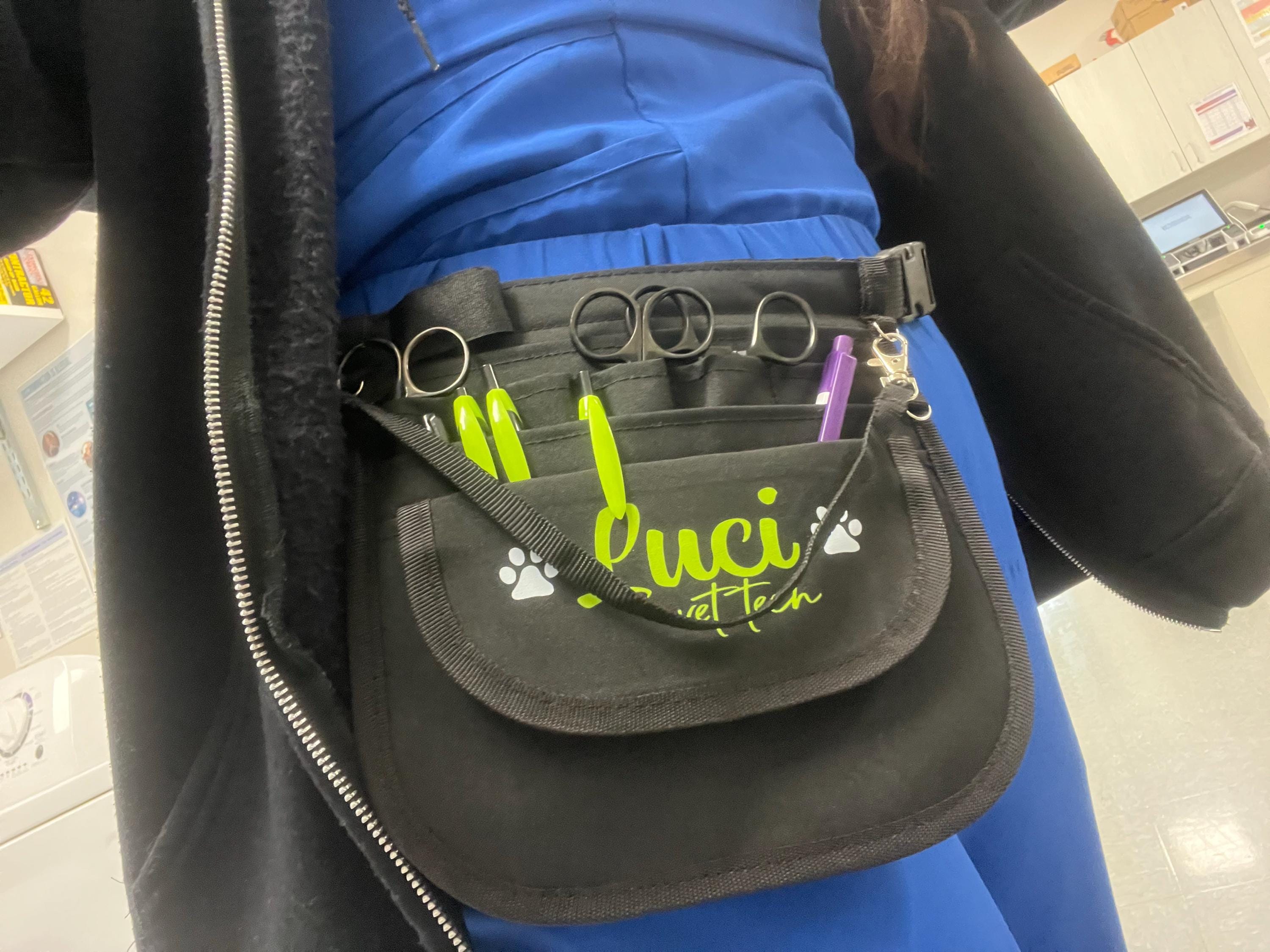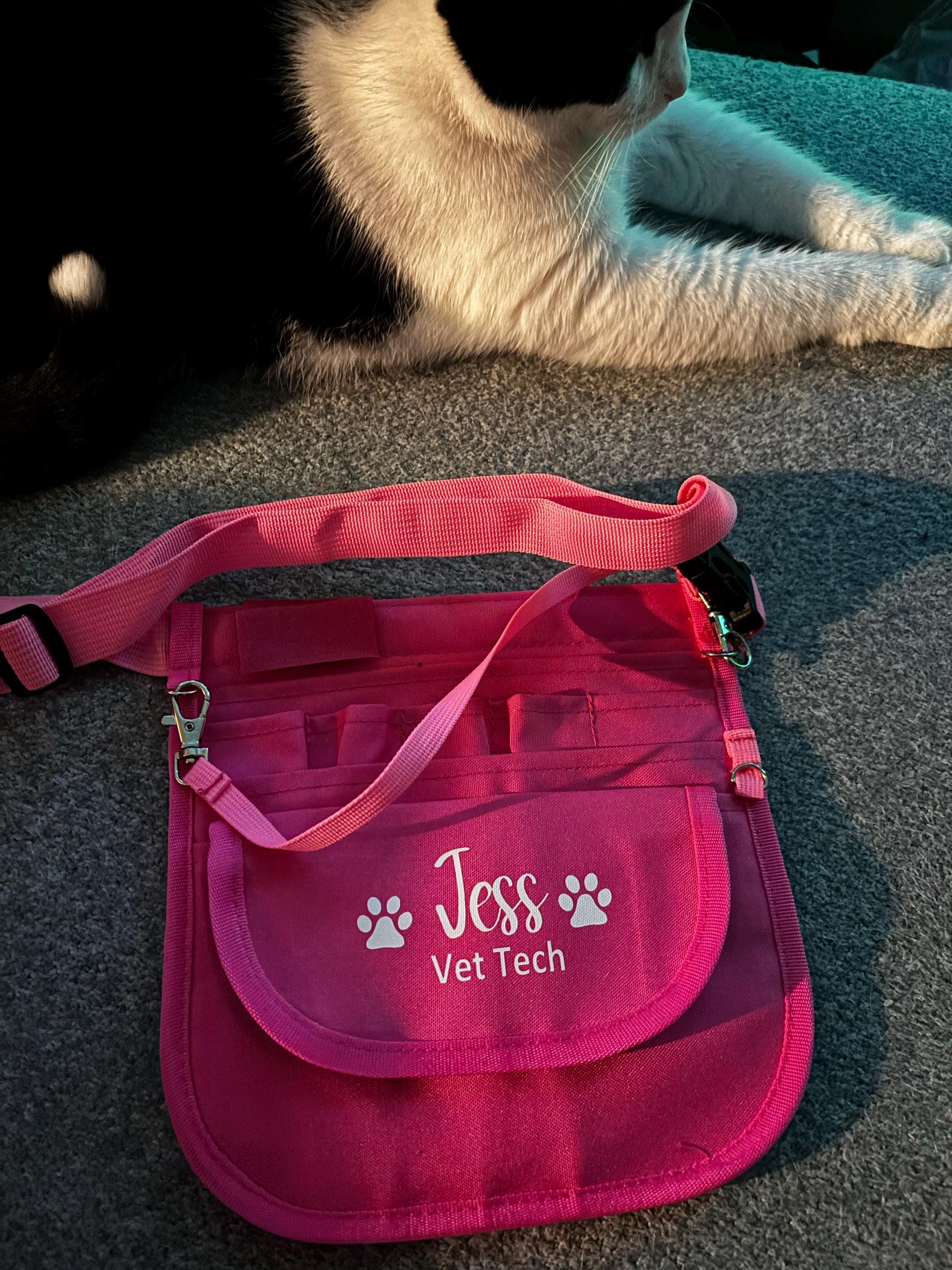 Our Vet Tech Pack is the ultimate Organizer Tool Belt for all of your tools and accessories! This makes the perfect gift for Vet Techs, Vet Assistants, Vet Receptionist, RVT, LVT, Veterinarian, DVM, Licensed Vet Tech, Vet office staff, receptionist, kennel tech, Pet groomer, Nurses, Doctors, Medical Students, Medical Assistants, MA, CMA, and so much more! Beautiful yet functional! Add their name and title to make it more special and one of a kind! Get one for yourself too, you won't regret it!
