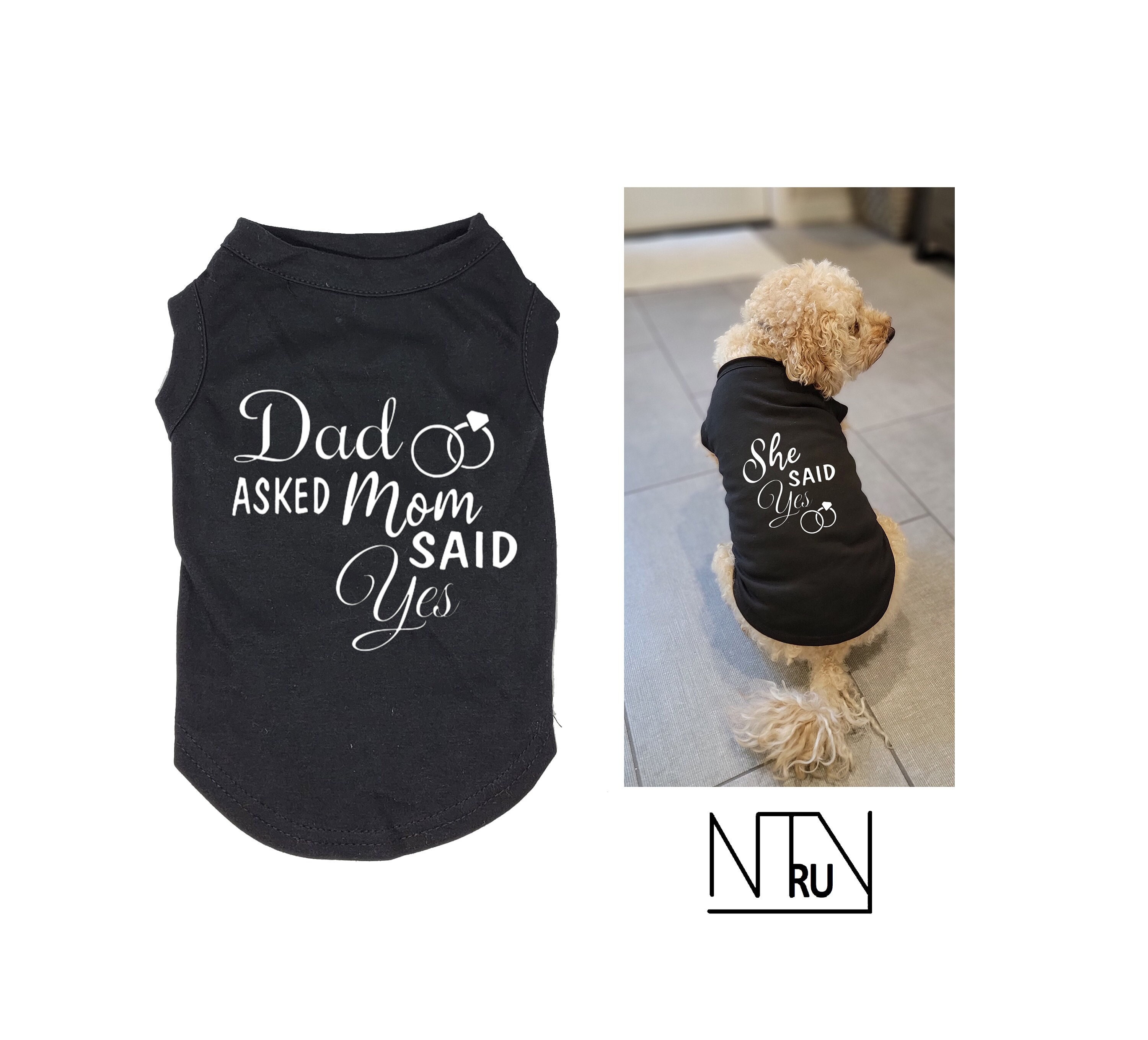 Our wedding proposal announcement Shirt is the perfect gift for new or expecting Husband Wife, dog mom, dog dad! Give your dog or cat the most important job of announcing the joy! Dog shirt is made using high-quality polyester and cotton (certain colors are 100% polyester) for comfort and stretch.