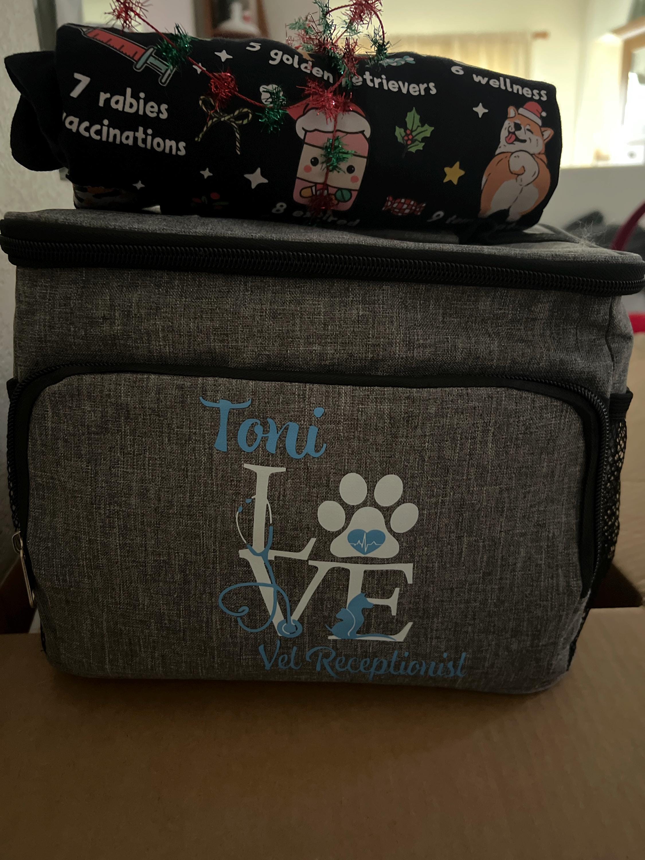 This Personalized Lunch Bag is makes the the perfect gift for Vet Tech, Vet Assistants, Veterinarian, Vet Receptionist, Nurses, Physician and medical assistants, RN, LPN, LVN, LVT, RVT, Nursing student, Medical students, MA, Graduations, and many other healthcare professions! Add their Name and Title to make it special and one of a kind! Get one for yourself too while you're at it, you won't regret it!