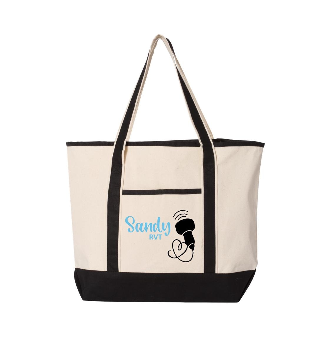 Personalized Sonographer Tote Bag — Custom Ultrasound Tech Canvas Tote with Name and Credential